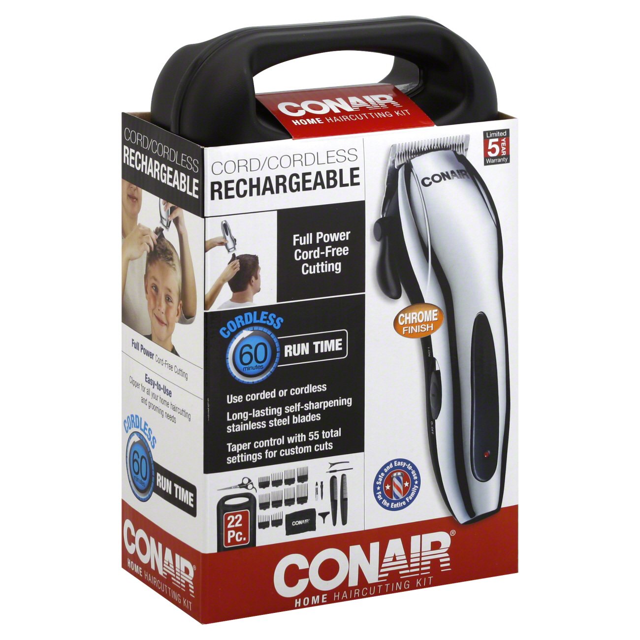 Conair 22 piece rechargeable cord cordless hair cutting kit. Cut your own hair your friends andor your familys hair with this all-around mens grooming haircut kit. Please let me know. The Conair mens hair clipper comes with long-lasting self-sharpening stainless steel blades that are durable.